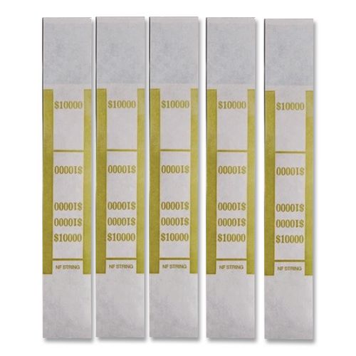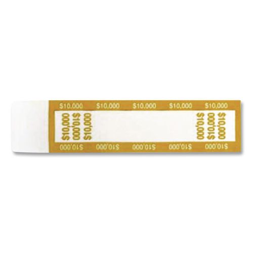 Mustard/white Kraft $10,000 currency straps are manufactured and color-coded to Federal Reserve and Aba standards. Quick stick adhesive for easy wrapping.