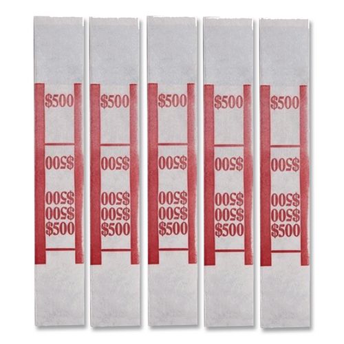 Color-Coded Kraft Currency Straps, Self-Adhesive, Fives, $500 Strap, Red/White, 1,000/Pack