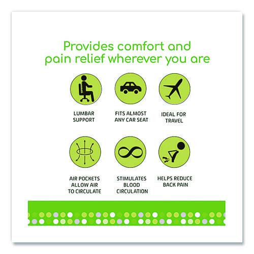 Enhance ergonomics and sit up straighter with this back cushion. Compatible with most office chairs and car seats, this cushion helps reduce back pain by providing comfortable lumbar support and encouraging better posture. Vacuum-formed air pockets help keep you cool by improving airflow and gently massaging your back. Portable design for use almost anywhere.