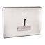 Push lever dispenses one seat cover at a time. Replaceable lock with push-button option. Key guard prevents theft (key included). Simplified door hinge for easier filling. Mounting screws included.