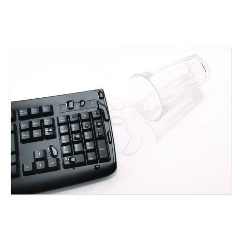 Spill-proof protection on keyboard with a thin membrane that protects the electronics from liquids. Full-size keyboard layout features six rows including numeric keypad. Optical tracking with 1200 dpi provides high-definition tracking for enhanced performance. Comfortable two-button, scroll wheel mouse design is ideal for mobile right-handed or left-handed users. 2.4 GHz wireless connection allows for complete freedom and mobility. Plug-and-play installation so you can be up and running quickly to start typing and scrolling. This product is designed to comfortably fit and be effective for users of all hand sizes.