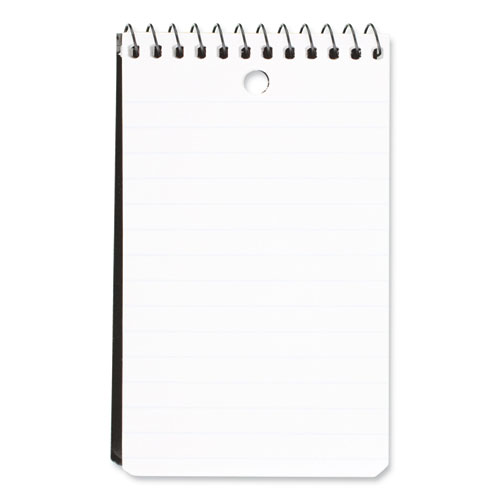 Top-bound with a spiral-wire binding and a sturdy cardboard cover, this handy pad folds back neatly for easy notetaking wherever inspiration strikes. High-quality, ruled paper takes any pencil or ink marks. Sized for easy portability, it's perfect for carrying along with you in your pocket, bag or purse. Single-hole punched for easy insertion in any binder or for hanging off any sort of ring or hook.