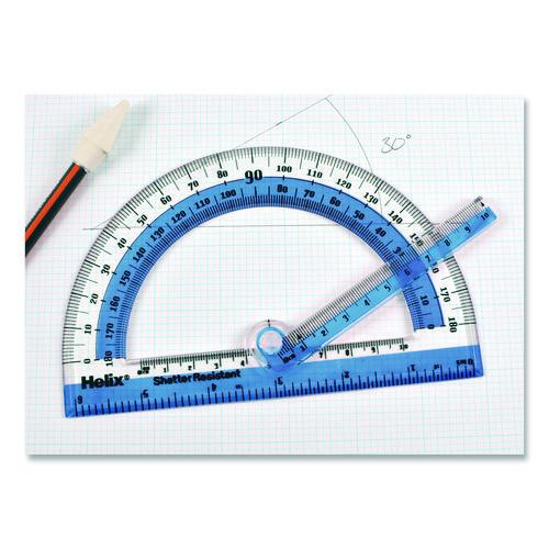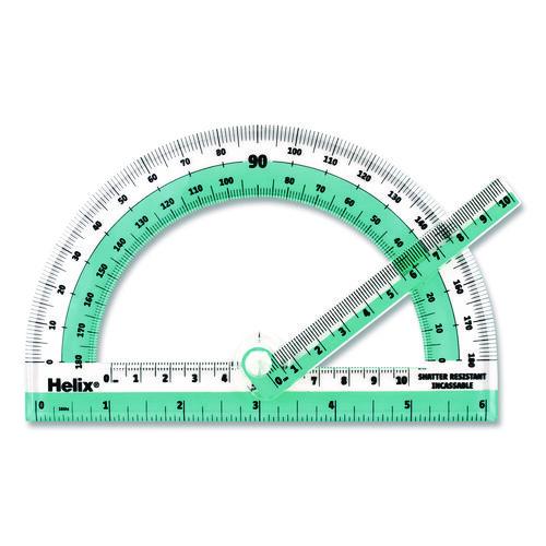 - Protractor body features integrated 6" and 10 cm rulers and a dual-graduated top curve so angles can be measured left to right or right to left.