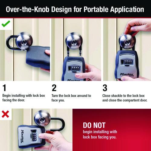 Locking Combination 5 Key Steel Box, 3.25" Wide, Black/Silver