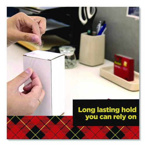 Designed to be extra durable with a thicker backing, delivers a reliable, long-lasting hold ideal for tears, small packages, labeling and more. You'll love its virtually clear look that practically disappears upon application–lending a professional finish to envelopes and important documents. Offers a superior bond on contact.