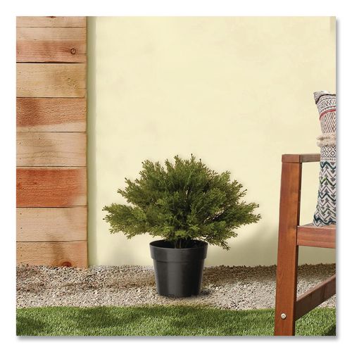 This Globe Juniper in round growers pot will add a touch of greenery to wherever it is displayed. This artificial planting looks incredibly real yet requires none of the maintenance of a living shrub. Perfect for porch, patio or poolside.