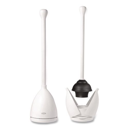 Good Grips Toilet Plunger and Canister, 24" Plastic Handle, 6" dia, White