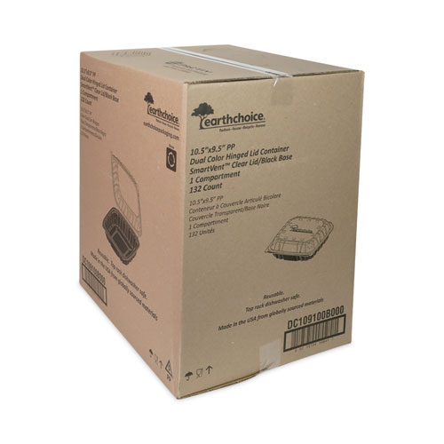 EarthChoice Vented Dual Color Microwavable Hinged Lid Container, 66 oz, 10.5 x 9.5 x 3.1, Black/Clear, Plastic, 132/Carton