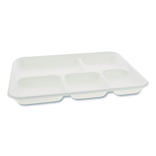Compostable Fiber Blend School Lunch Tray, 10 x 8 x 1, White, 240/Carton