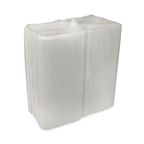 Vented Foam Hinged Lid Container, Dual Tab Lock, 3 Compartments, 9.1 x 9 x 3.3, White, 150/Carton