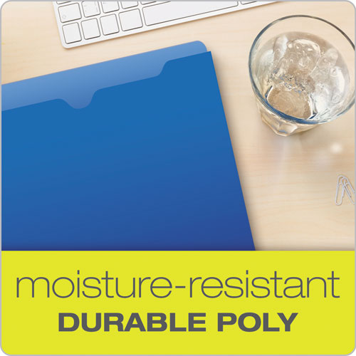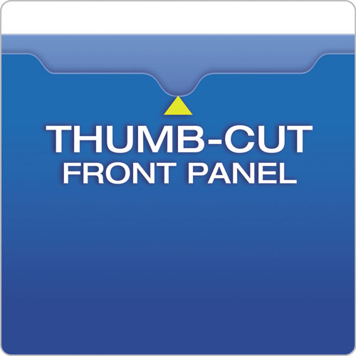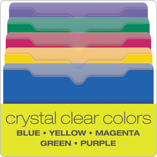 Five bright translucent colors help to organize and identify files. Thumb cut for easy access. Wear-, tear- and moisture-resistant. Polypropylene construction.