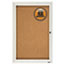 - Durable, enclosed natural-cork bulletin board with high-density fiberboard backing holds documents securely in place.