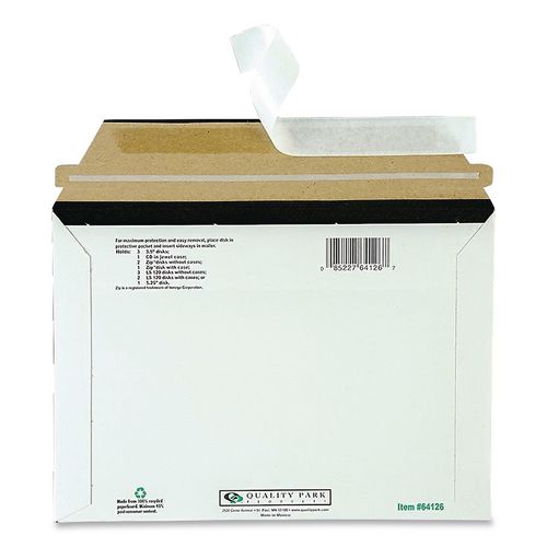 Antistatic Fiberboard Disk CD/DVD Mailer, Cheese Blade Flap, Redi-Strip Adhesive Closure, 6 x 8.63, White, 25/Box