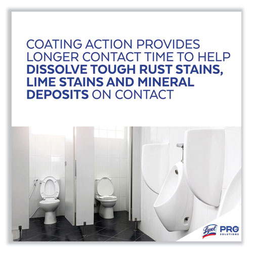 Clean, disinfect, and deodorize urinals and toilet bowls to give guests a clean bathroom experience. Meet staff and customer expectations around cleanliness. Optimize restroom cleaning time with a powerful formula that works on the toughest toilet stains in seconds. Remove hard water deposits with the thick 9.5% hydrochloric acid formula that adheres to stains for better cleaning and coats the bowl above and below the waterline. Kills 99.9% of viruses and bacteria when used as directed. Elevate restroom experiences throughout facilities for customers and staff with a powerful cleaning formula that helps leave surfaces shiny. Will not harm plumbing or septic systems.