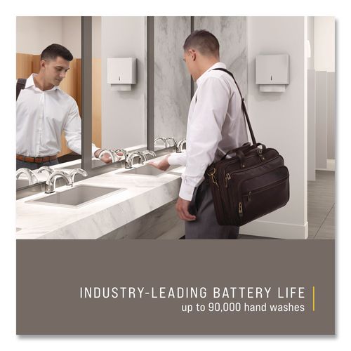 - Touch-free system delivers soap without cross-contamination and helps reduce the spread of germs.