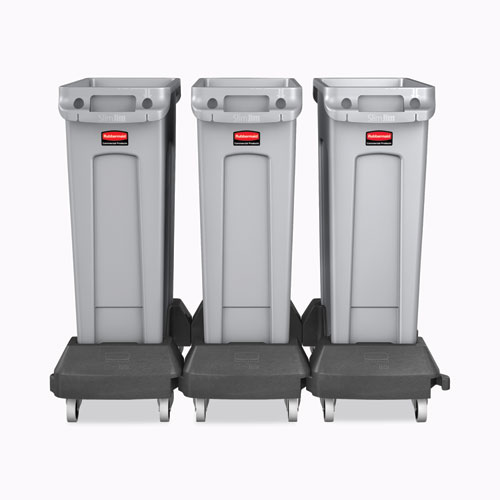 Designed to support and transport Vented Slim Jim® containers smoothly and efficiently through any commercial facility. Promotes recycling and improves productivity by offering the ability to transport multiple waste streams at one time. Features a side clip-on connection that allows you to train several dollies together for collection and transportation purposes.