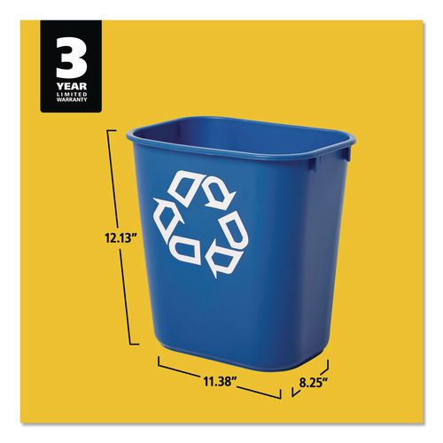 Deskside Recycling Container, Small, 13.63 qt, Plastic, Blue