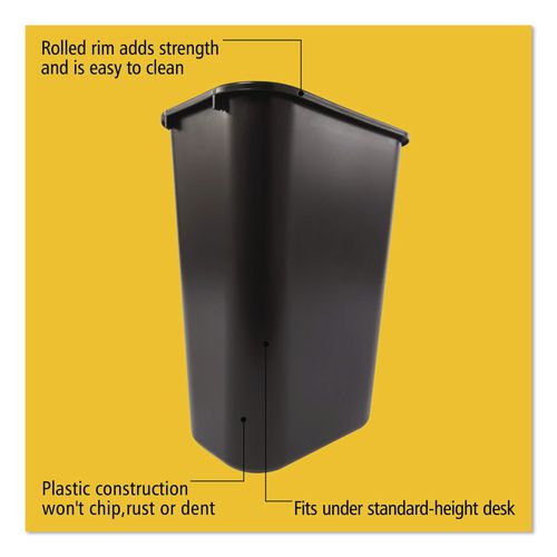 Deskside Plastic Wastebasket, 10.25 gal, Plastic, Black