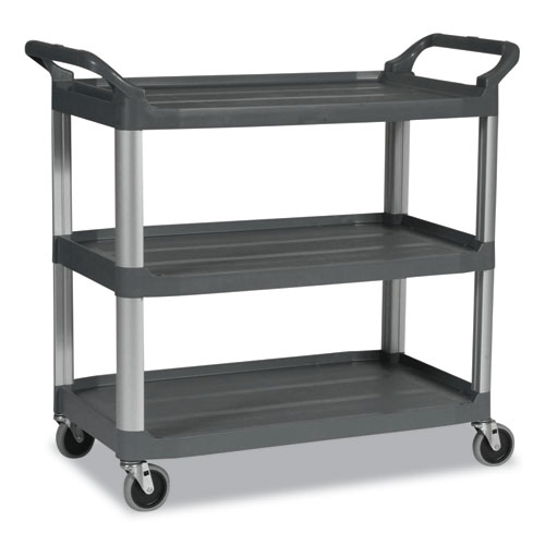 Xtra Utility Cart with Open Sides, Plastic, 3 Shelves, 300 lb Capacity, 20" x 40.63" x 37.8", Gray