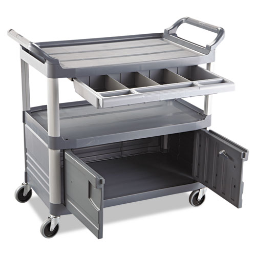 Xtra Instrument Cart with Locking Storage Area, Plastic, 3 Shelves, 300 lb Capacity, 20" x 40.63" x 37.8", Gray
