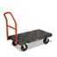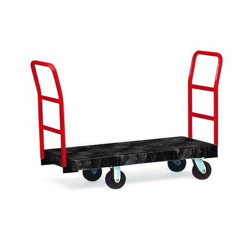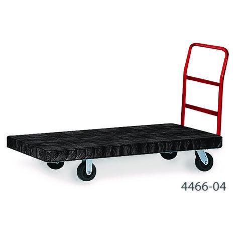 The Rubbermaid Commercial Heavy-Duty Platform Truck is constructed from Duramold resin and metal composite for durability and strength. The hand truck has a 500-pound capacity. The panel truck features molded-in tie-down slots and a textured surface to keep loads secure during transport. The hand truck has 2 fixed casters and 2 swivel casters to improve maneuverability.