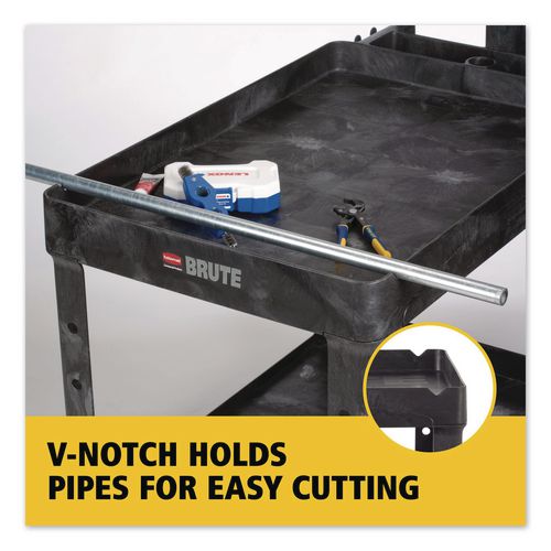 BRUTE Heavy-Duty Utility Cart with Lipped Shelves, Plastic, 2 Shelves, 500 lb Capacity, 25.88" x 45.25" x 37.13", Black