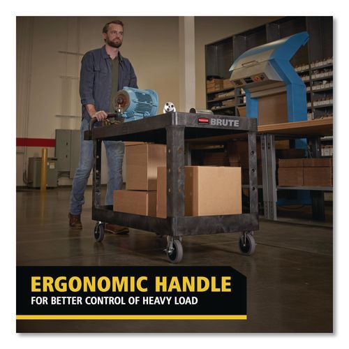 Heavy-Duty Utility Cart with Flat Shelves, Plastic, 2 Shelves, 500 lb Capacity, 25.25" x 54" x 36", Black