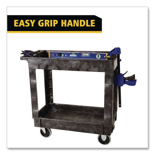 Heavy-Duty Flat-Handle Maintenance/Utility Cart, Plastic, 2 Shelves, 500 lb Capacity, 34.13" x 17.38" x 32.38", Black