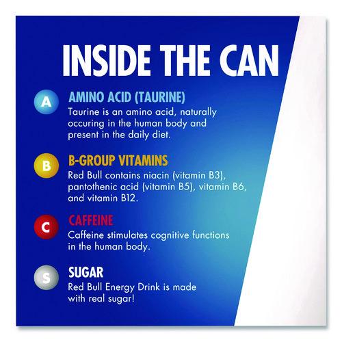 Energy drink vitalizes body and mind and contains 27 grams of sugars. The formula of Red Bull The Red Edition contains a unique combination of high-quality ingredients, such as caffeine, B-group vitamins, sugars, and taurine.