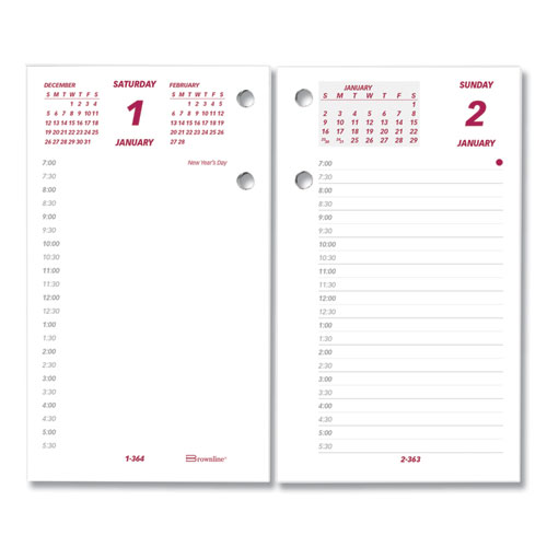 One day per two page spread with half-hour appointments times. Fits most calendar bases up to 6 x 3 1/2 page size, sold separately.
