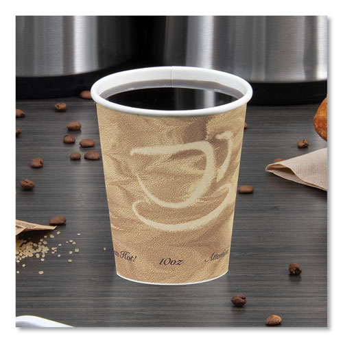 Single Sided Poly Paper Hot Cups, 10 oz, Mistique Design, 50/Bag, 20 Bags/Carton