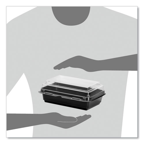 Creative Carryouts Hinged Plastic Hot Deli Boxes, 28 oz, 7.87 x 5.4 x 3, Black/Clear, 200/Carton