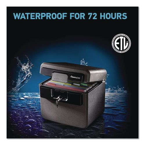 Protect valuable essentials at work or home with this waterproof and fire-resistant file safe. Secure up to 40 hanging folders or digital media files. Features an in-lid organizer for storing smaller items such as USB thumb drives, CDs and passports. With an ETL Verified flood protection mark it keeps contents dry for 72 hours and insulated to keep contents protected from fire for 30 minutes up to 1,550 degrees Farenheit.