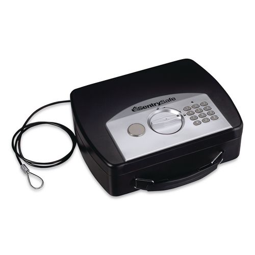 P008E Portable Electronic Security Safe, 0.08 cu ft, 10 x 7.9 x 2.9, Black/Silver