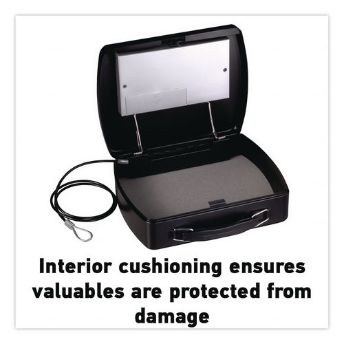 Portable safe offers added security for your irreplaceable, compact possessions. Featuring a solid steel body and a battery-powered, digital locking system with a one-to-eight-digit programmable code, it's ideal for keeping jewelry, digital-storage devices and more safe and sound. Soft, interior lining cradles and protects your fragile, delicate valuables. Digital lock requires two AA batteries (sold separately).