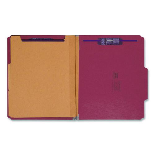 Pressboard Top Tab Classification Folders, Expands 2", 2 Dividers, 6 SafeSHIELD Fasteners, Letter Size, Bright Red, 10/Box