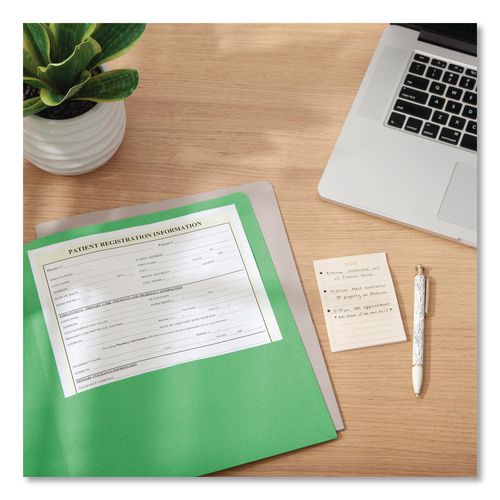 Large pockets safely hold documents, photos or certificates for easy transport while keeping the material immediately accessible. The left pocket is die cut for a title or business card. Heavyweight textured stock makes a distinctive impression. Two 4.5" high inner pockets give easy access to materials. Each pocket holds up to 50 sheets of paper. Reinforced at the sides and closed in the center for extra durability.