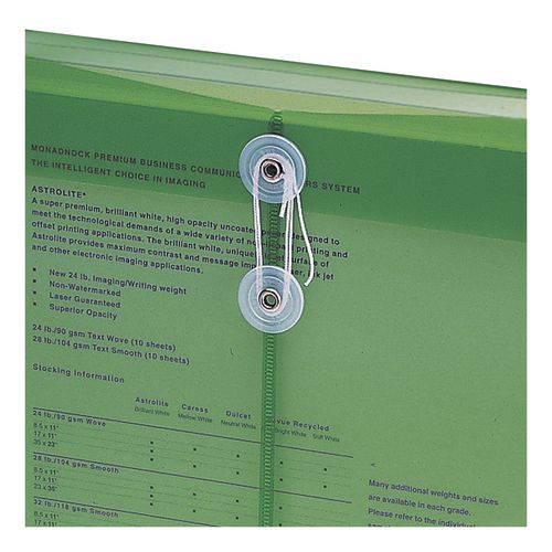 Poly String and Button Interoffice Envelopes, Open-End (Vertical), 9.75 x 11.63, Transparent Green, 5/Pack