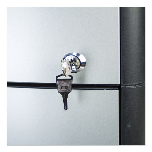 Who said filing can't be stylish? Brushed metal sides and front make this perfect for any office. Built-in rails for hanging letter size files. Label holders on front of drawers make it easy to identify contents. Easy sliding system for smooth drawer operation. Locking drawers keep contents safe and secure. Dual-purpose: can be used under worksurface or as a freestanding unit. Moves with ease from one area to another and lock in place when it has reached it's final destination.