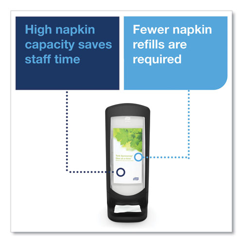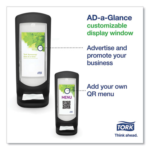 Ideal for limited service restaurants, breakrooms and coffee stations and anywhere a small napkin is preferred. This compact dispenser system delivers napkins one-at-a-time, improving hygiene and reducing consumption by at least 25%, when compared to traditional dispenser napkins. The AD-A-Glance® customizable display window serves as an advertising tool to promote your products and engage with your guests. Made with durable and easy to clean materials that reduce maintenance and labor costs.