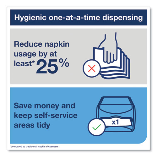 The ideal napkin dispenser for limited service restaurants that offer napkins at a central location. This modern dispenser delivers napkins one-at-a-time, improving hygiene and reducing napkin consumption by at least 25%, when compared to traditional dispenser napkins systems. AD-A-Glance® customizable display window serves as an advertising tool to promote your products and engage with your guests.