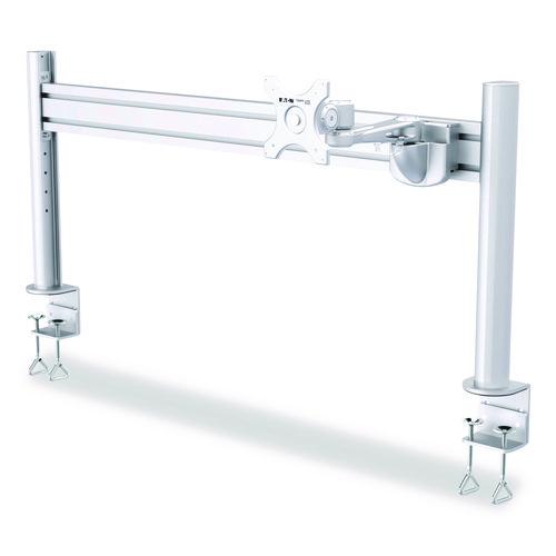 This VESA-compliant TV wall mount lets you place your digital signage, monitor or television where everyone can see it best. It's ideal for office, hybrid and work-from-home environments, including office cubicles, art tables and lab workbenches. The stylish aluminum mount fits most flat-panel displays from 13 to 32 inches and supports up to 22 pounds. The articulating arm adjusts independently to optimize viewing angles, minimize glare and improve ergonomics. To minimize screen glare, reduce eye fatigue and increase viewing comfort, the mount features -15° to +15° tilt, -90° to +90° swivel and full 360° rotation for positioning your screen just right. The arm extends up to 10" from the slat rail. For hassle-free display compatibility, this slat wall mount supports the following VESA mounting hole patterns: 75 x 75 and 100 x 100. Requires slat wall system for installation and easily attaches to the Slat Rail with Posts (DMSWKITTAA) or the Slat Rail (DMSWSLATTAA), both sold separately. Your monitor is elevated above the desktop, which frees up precious workspace. You can also slide the monitor along grooves and then adjust the viewing angle for optimal ergonomics. Grooves on both sides of the slat rail accommodate independently adjustable monitor setups when desks are pushed together back-to-back.