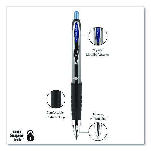 Signo 207 Gel Pen, Retractable, Medium 0.7 mm, Blue Ink, Smoke/Black/Blue Barrel, Dozen