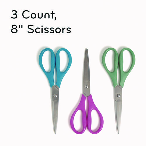 U-Eco Scissors, 9.45" Long, 3" Cut Length, Straight Assorted Color Handles, 3/Pack