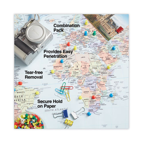 Keep papers organized using this convenient combination pack of paper clips, binder clips and push pins. Each comes in its own handy dispenser.