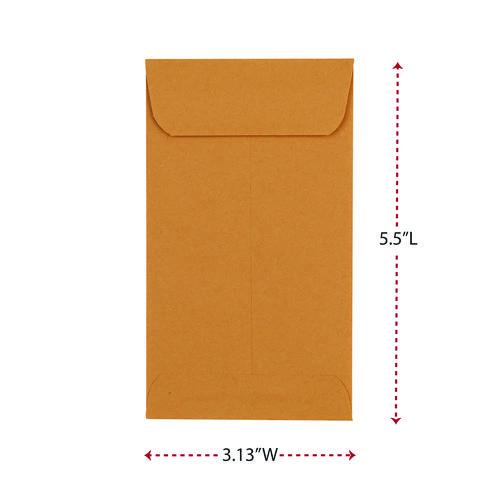 Kraft Coin Envelope, #5 1/2, Round Flap, Gummed Closure, 3.13 x 5.5, Light Brown Kraft, 500/Box