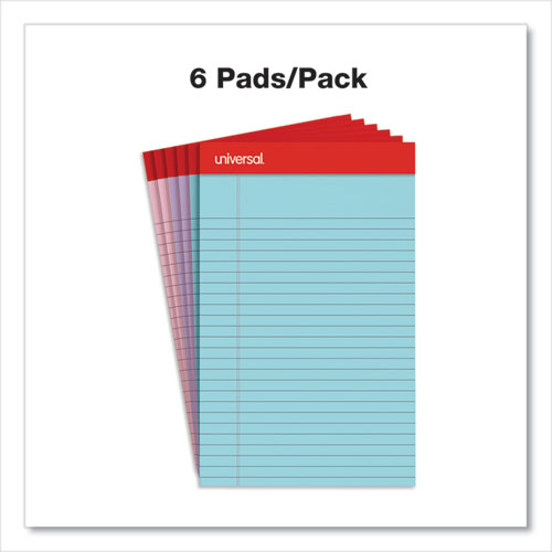 Perforated Ruled Writing Pads, Red Headband, Narrow Rule, (50) Assorted Pastel Color 5 x 8 Sheets, 6/Pack