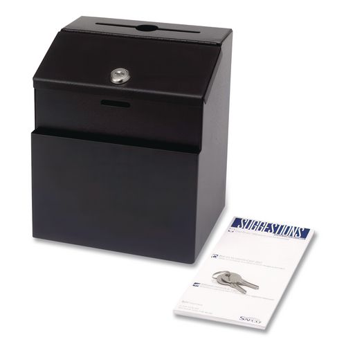 Steel Suggestion Box with Locking Top, 7 x 6 x 8.5, Black