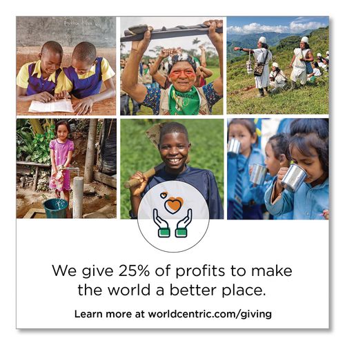 Compostable cutlery is made from TPLA, a bio-based plastic made from plant sugars and minerals. These utensils are reusable and dishwasher safe up to 100 loads. Great for parties, picnics and takeout, these utensils are a sustainable alternative to petroleum plastic. As a certified B Corporation, World Centric® is dedicated to upholding the highest standards of social and environmental responsibility, transparency, and accountability. We proudly give 25% of our profits to grassroots organizations driving global change. Choose World Centric® compostable foodservice products and make a difference today!