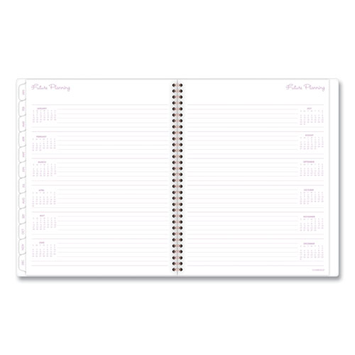 - Planner features rose gold twin-wire binding.